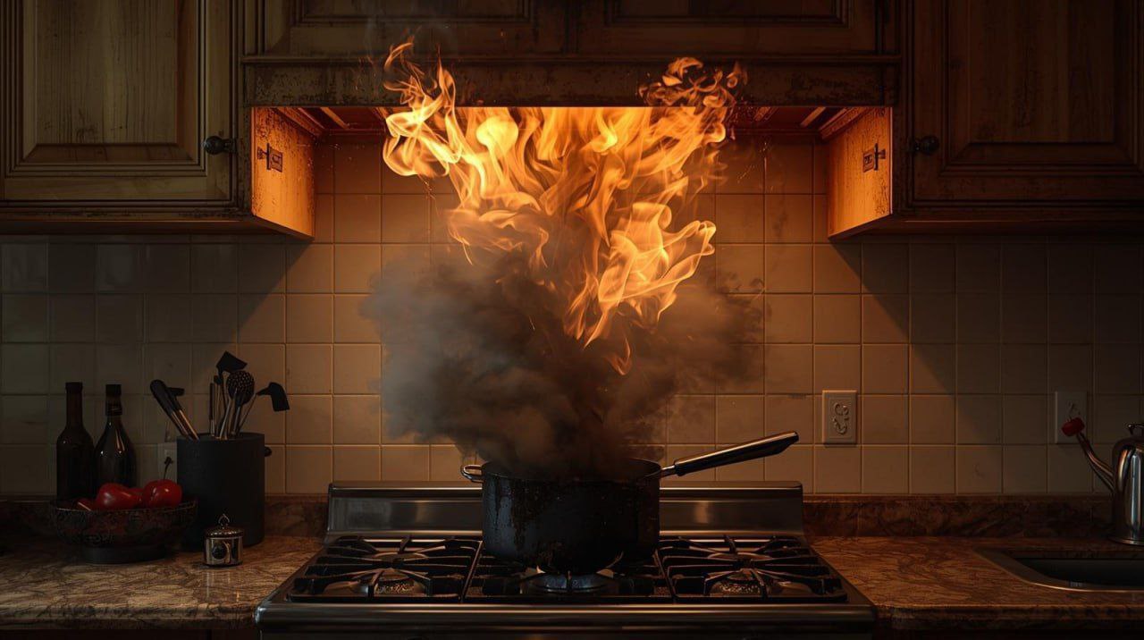 Хозяева забыли выключить плиту и ушли из дома, начался пожар. Площадь возгорания — 10 м. Пожарные ликвидировали огонь за 25 минут. Пострадали плита и мебель, кухня закопчена.