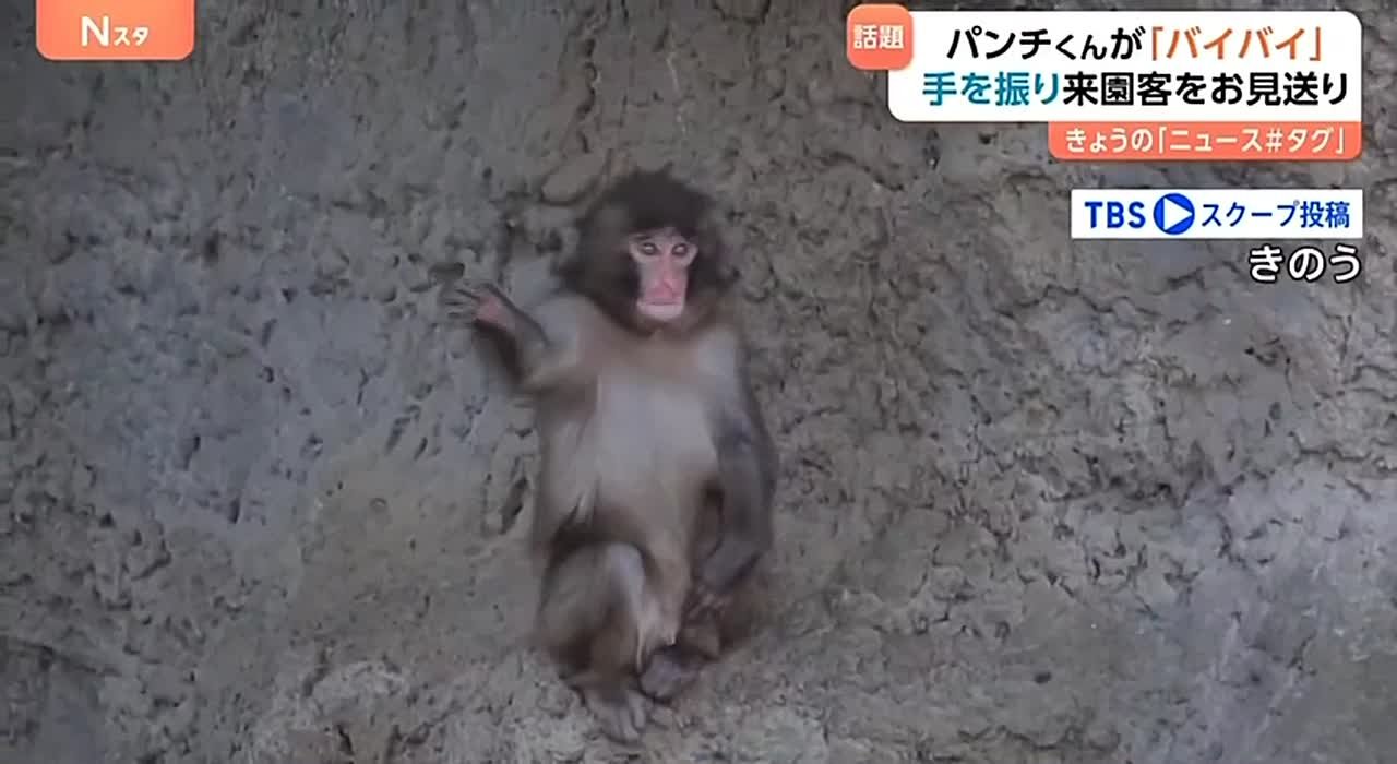 Маленькая обезьянка Панч научился приветствовать своих фанатов.