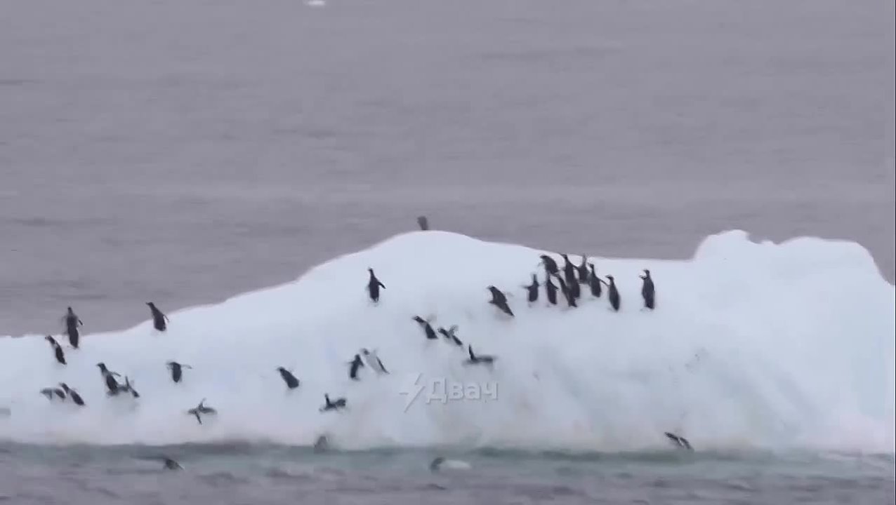 Турист в Антарктиде снял видео, как большая стая пингвинов решила отдохнуть на одной льдине: но птицы жёстко просчитались — их оказалось слишком много.