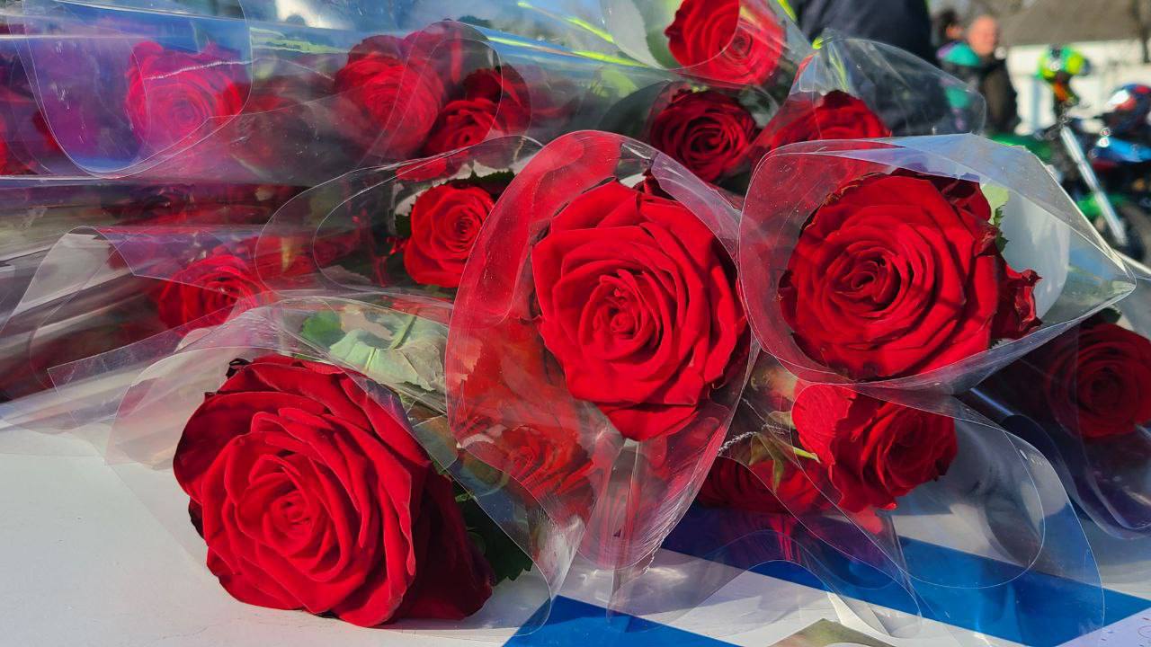 Женщинам-водителям вручают алые розы и весенние календари-открытки с пожеланиями безопасных дорог и хорошего настроения.
