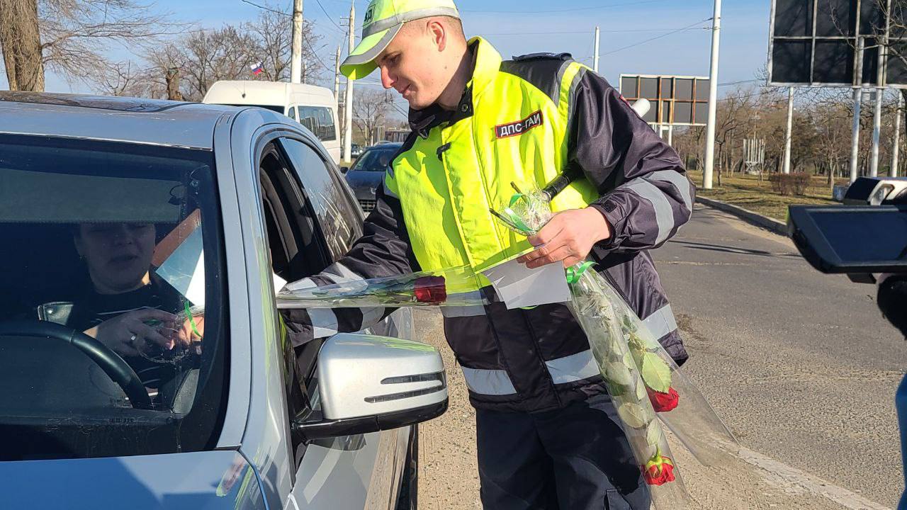 С букетами тюльпанов брутальные байкеры поздравляют автоледи с праздником весны. Сторонники строгого соблюдения ПДД, сегодня они дарят женщинам-водителям цветы, открытки и щедро раздают комплименты.