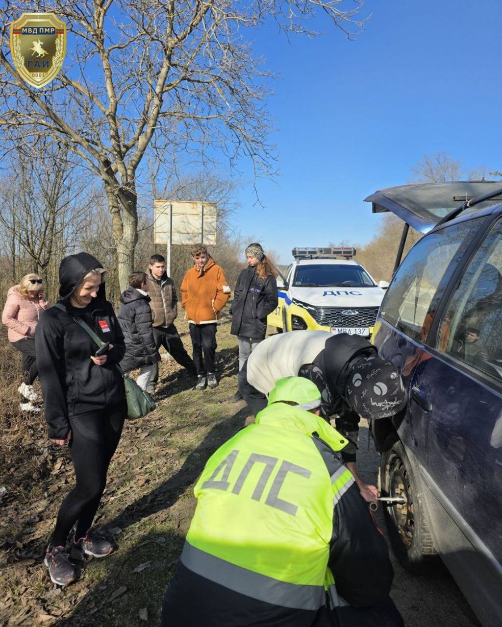 На помощь пришли сотрудники Госавтоинспекции. Инспекторы помогли устранить неисправность, после чего сопроводили транспорт, чтобы юные туристы могли безопасно продолжить путь.