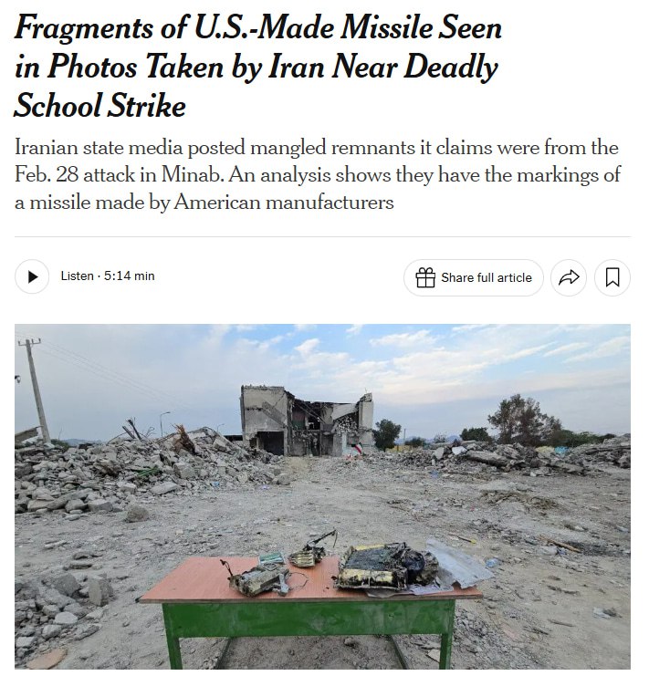 Обломки американской ракеты нашли на месте удара по школе в Иране, где погибли 175 человек, — The New York Times.