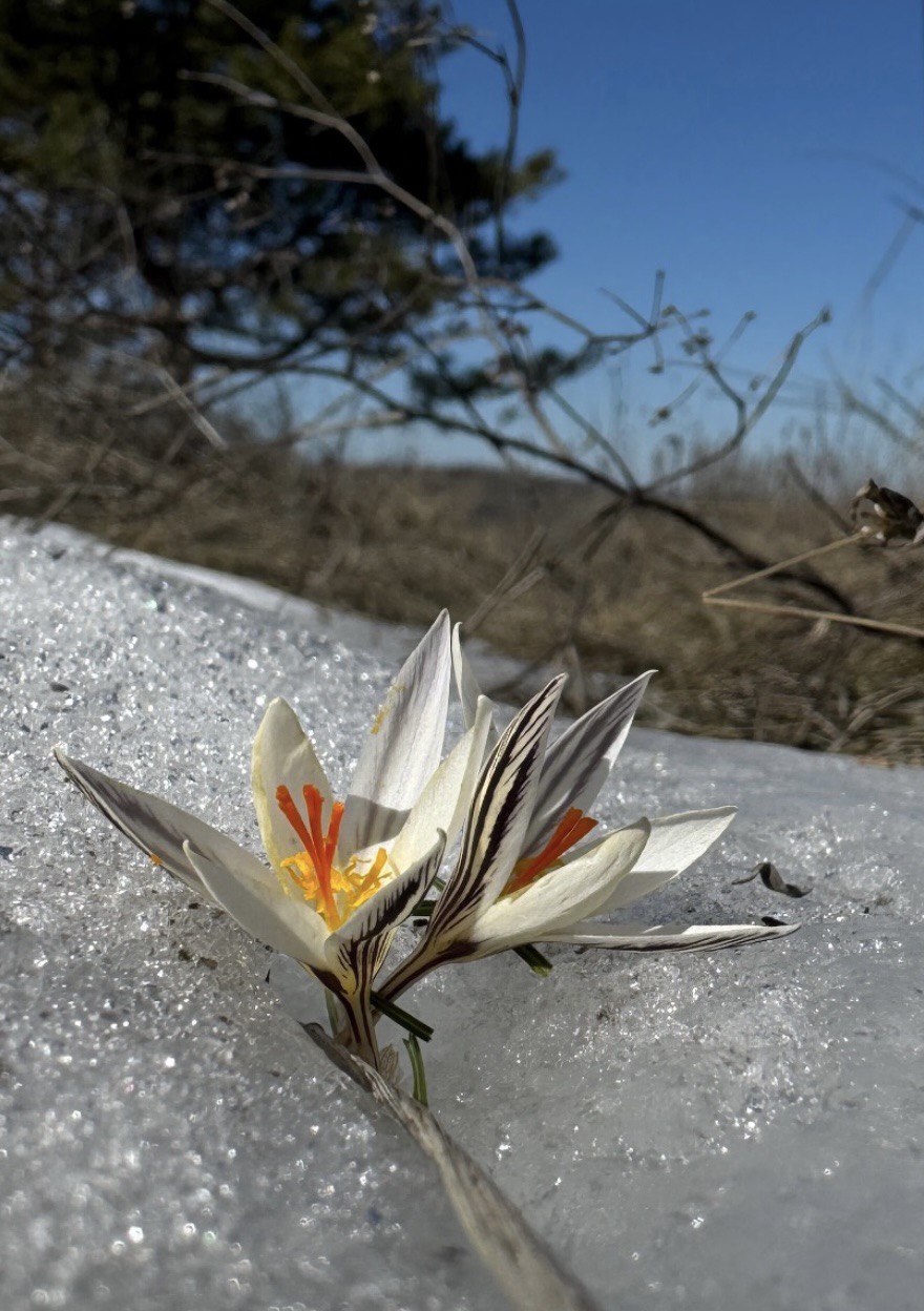 Первоцветы проросли сквозь снег в сосновом бору под Никольским в Слободзейском районе
