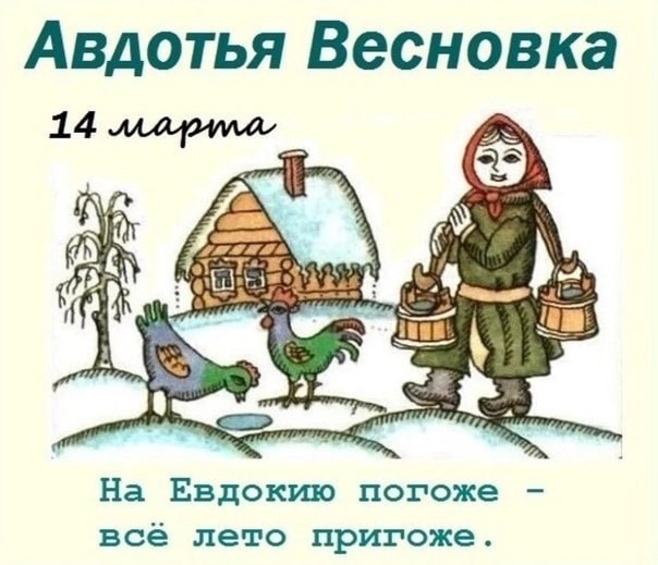 14 марта православные чтят память Евдокии Илиопольской. В народе день называют Евдокия Свистунья, Авдотья Плющиха или Весновка — считалось, что с этого дня начинается настоящая весна.