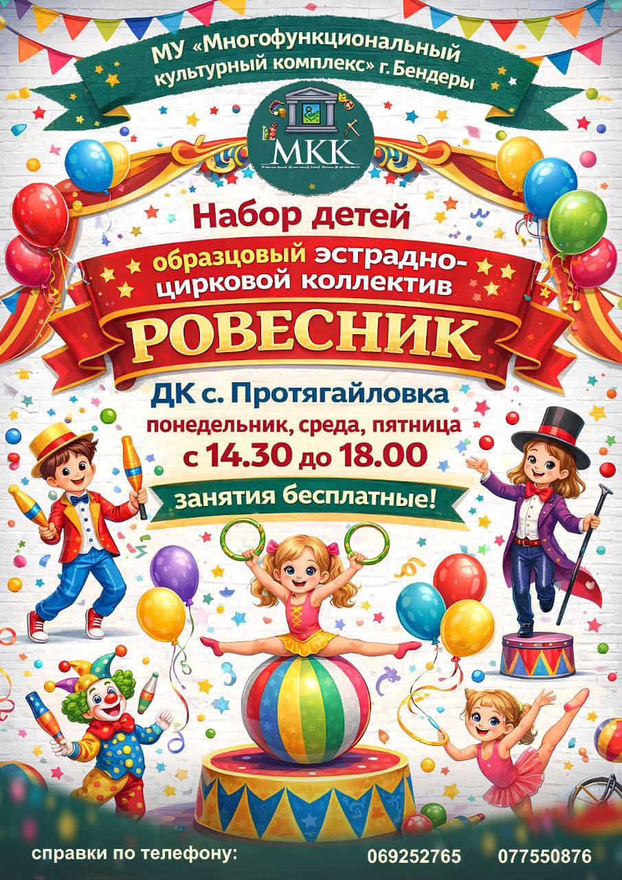 Мечтаете, чтобы ваш ребёнок стал ловким, гибким и уверенным в себе? Приглашает образцовый эстрадно-цирковой коллектив «РОВЕСНИК»!