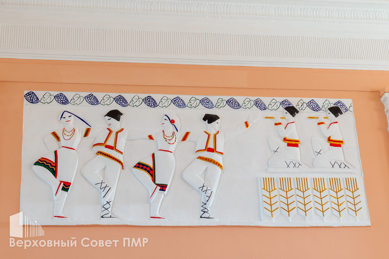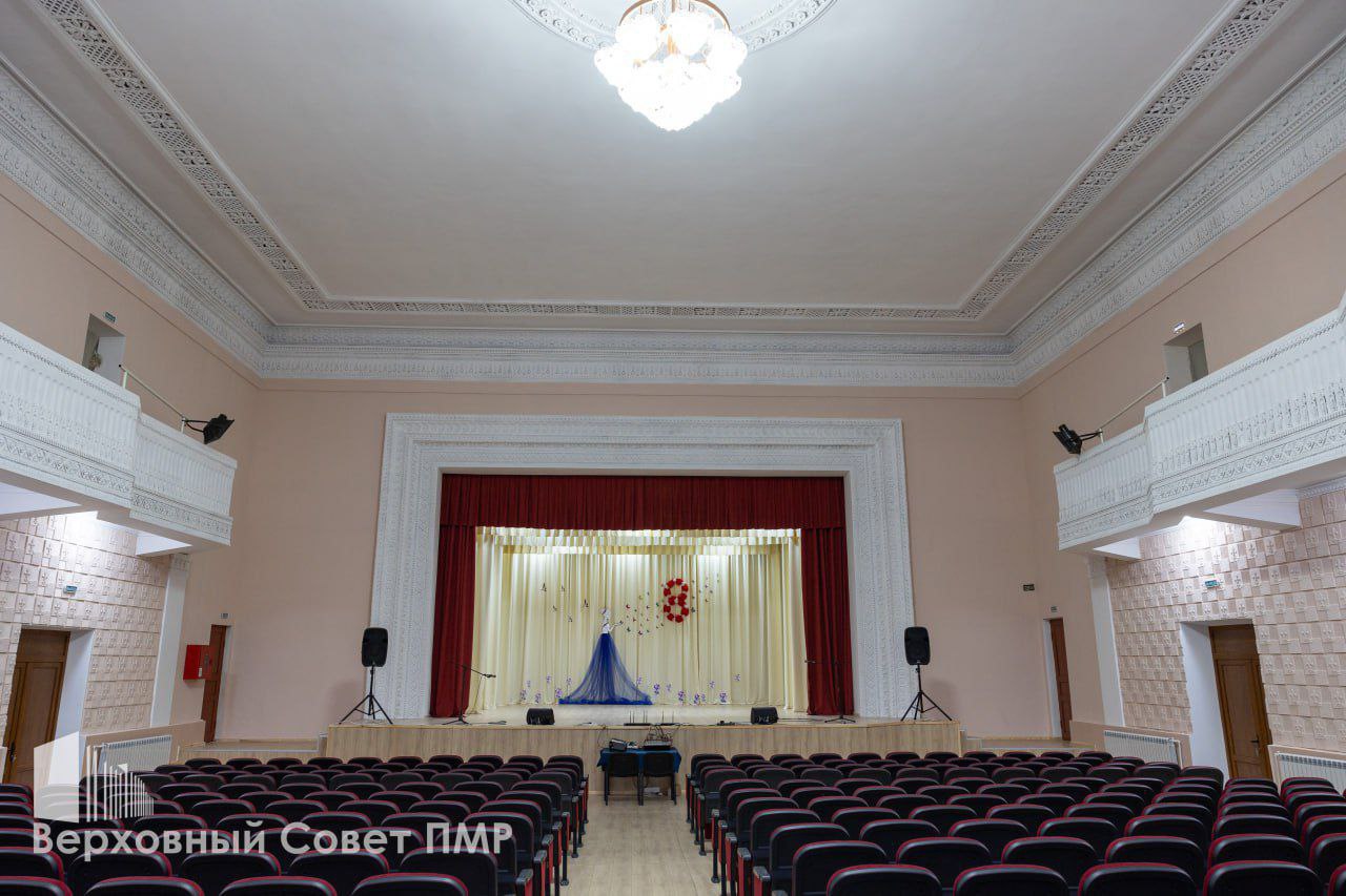 Ранее здесь уже обновили котельную, отопление и концертный зал. Сейчас завершили ремонт фойе: восстановили лепнину, оформили панно и обновили пол.
