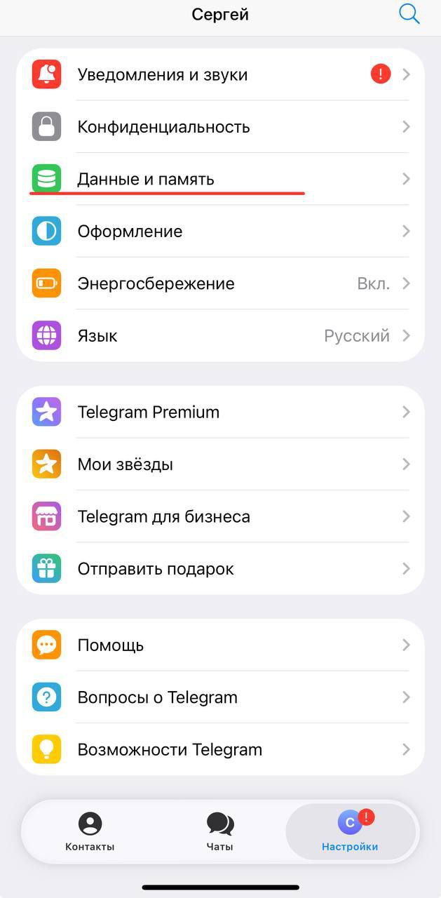 2. Выбираете «данные и память»