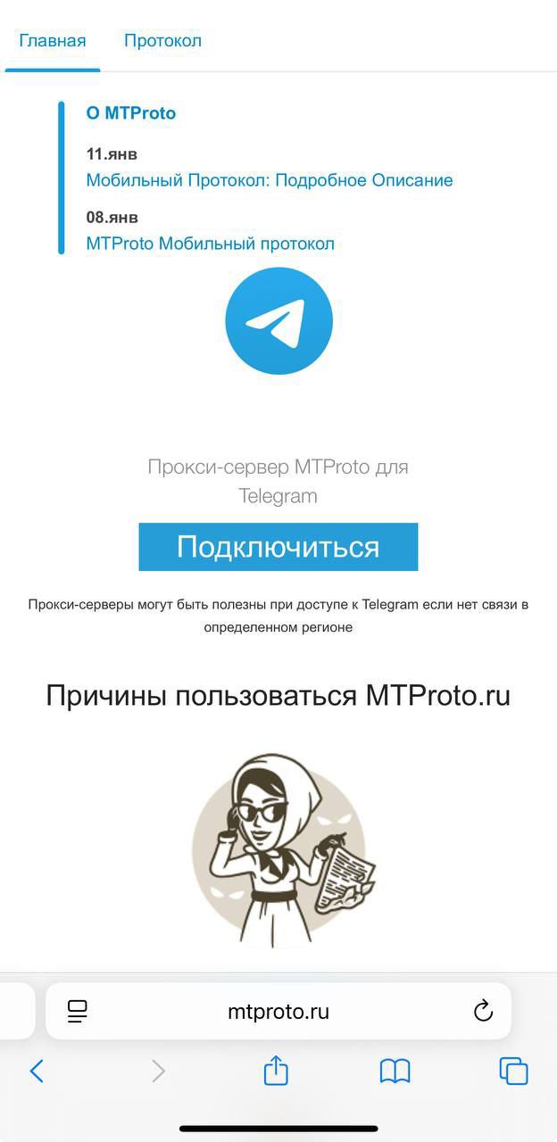 6. Заходите на сайт mtproto и нажимаете кнопку «подключиться».