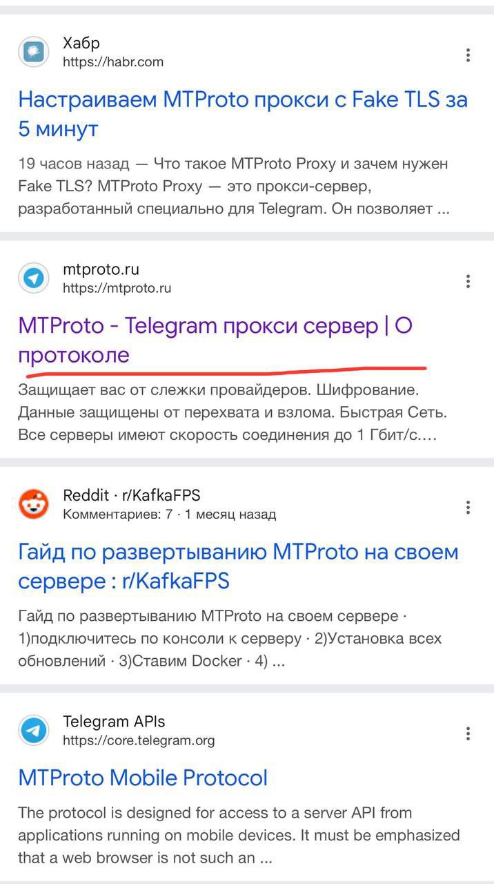 5. Далее идёте в любой поисковик и забиваете mtproto