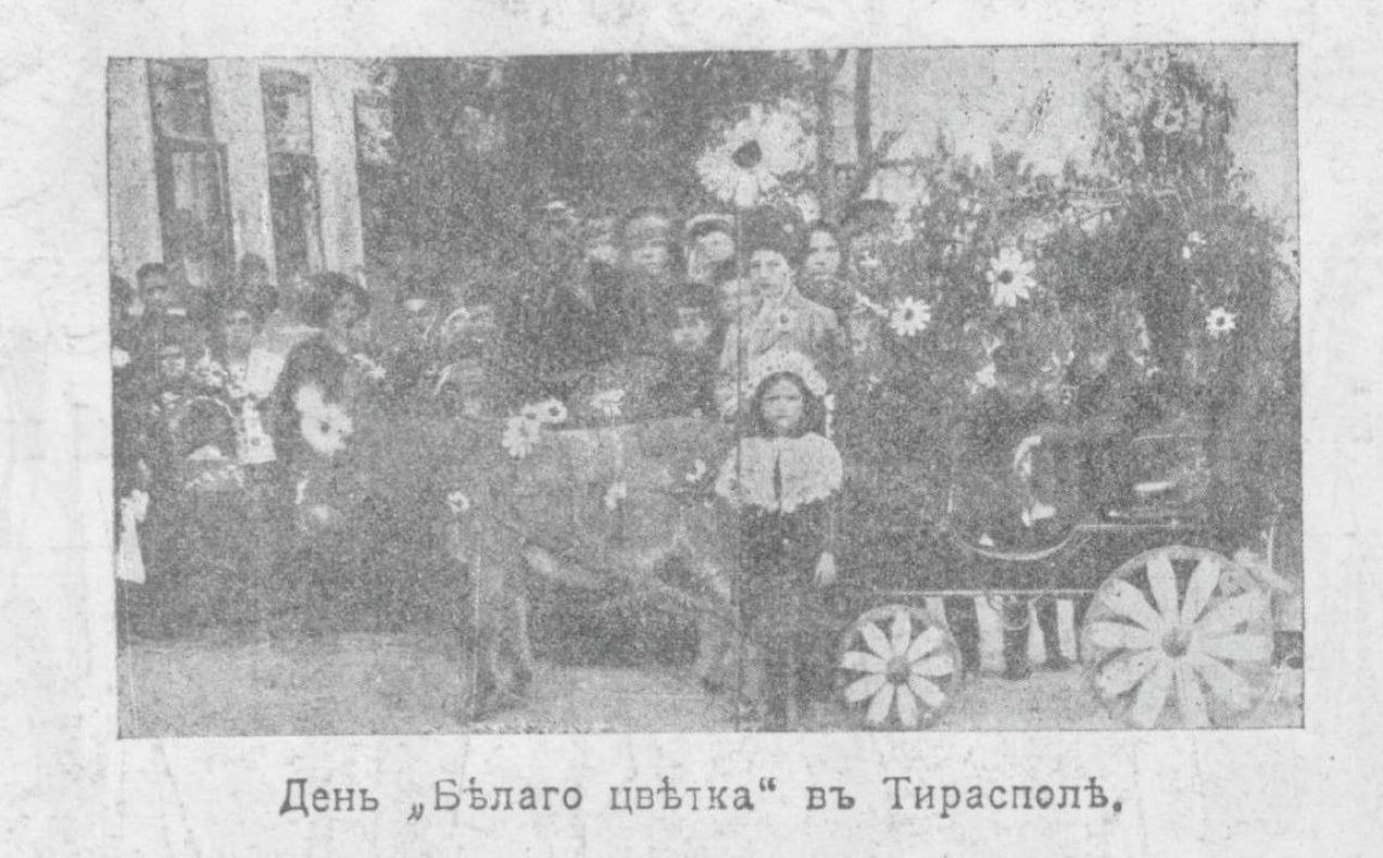 «День белого цветка» ежегодная акция по сбору средств для помощи больным туберкулёзом. Такие акции проходили по всей Российской империи. На заднем плане — угловой дом, на месте которого сегодня Пекарня №1 (ул. 25 Октября / Шевченко).