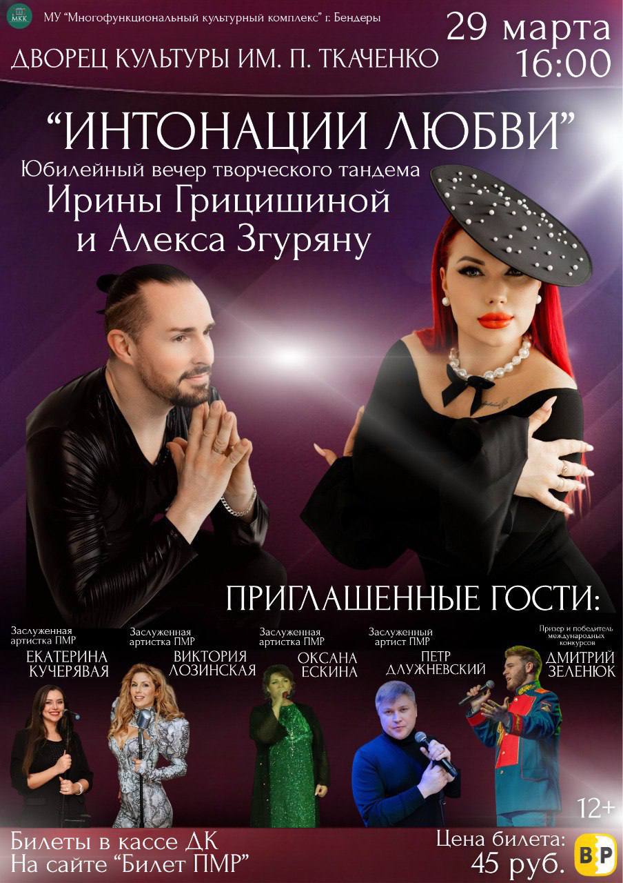 Приглашают на юбилейный творческий вечер дуэта Ирины Грицишиной и Алекса Згуряну.