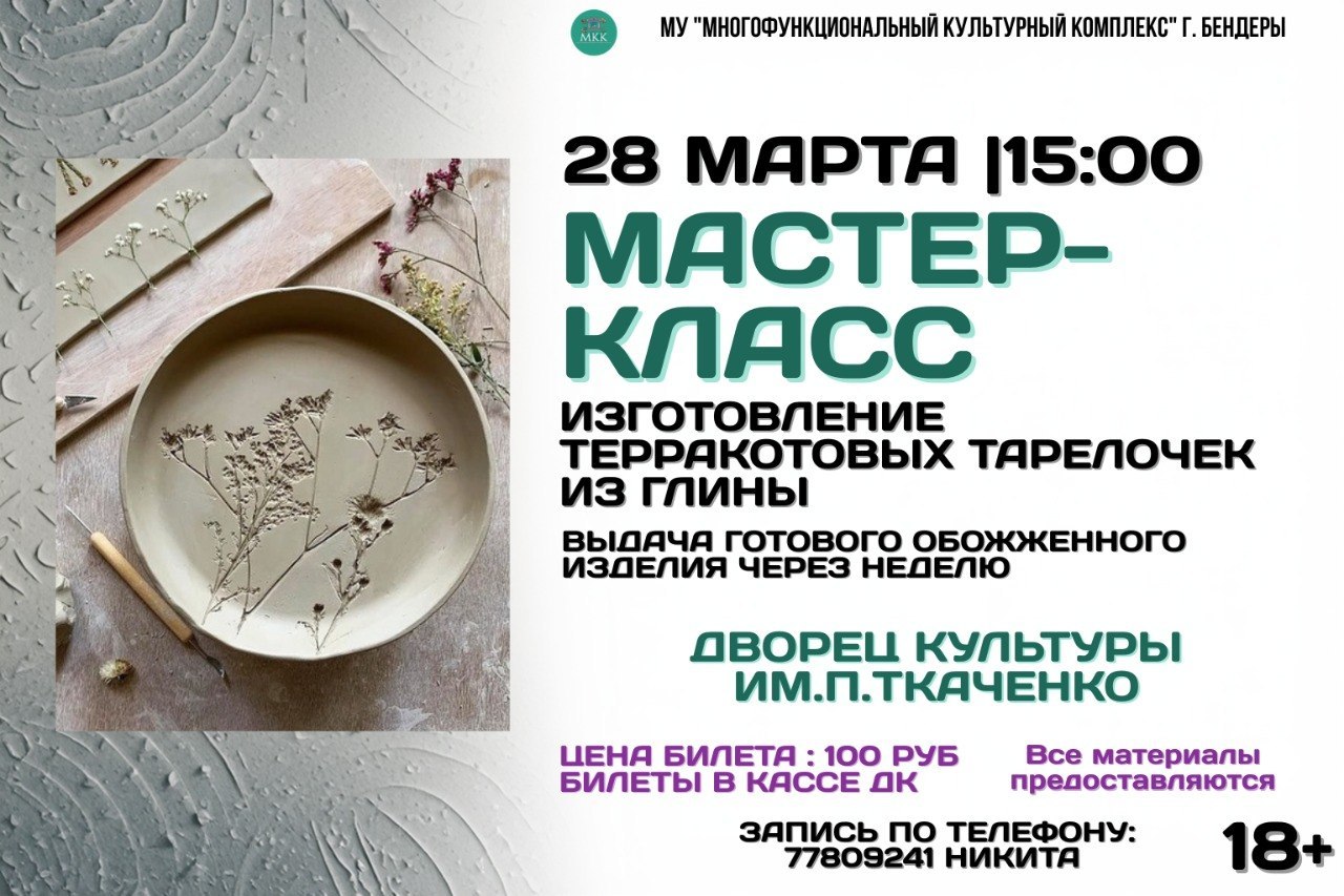На мастер-классе сможете создать уютные терракотовые тарелочки, украшенные оттисками живых цветов и трав.