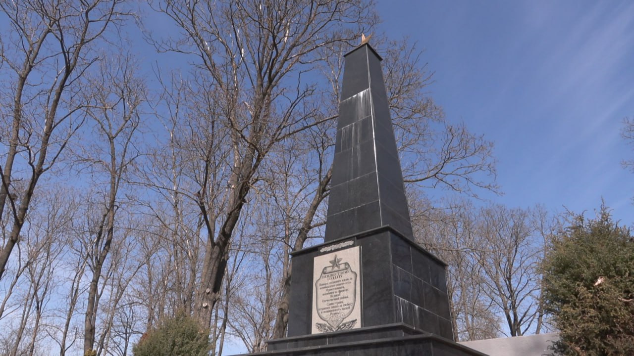 Парк реконструировали три года назад по президентской программе: обновили памятник, уложили плитку, установили скамейки и урны. Сегодня его благоустройство продолжается — уже при участии школьников.
