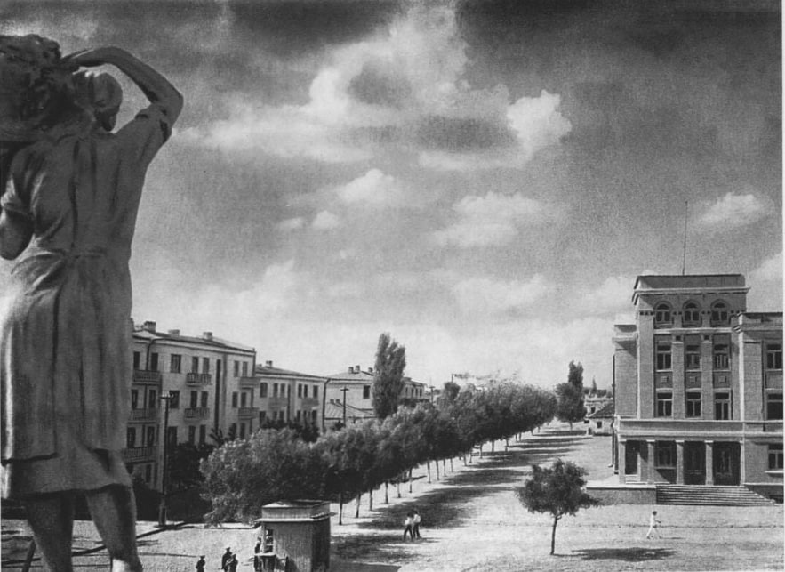До войны на этом месте было здание со статуей рабочей на крыше. Во время фашистской оккупации Приднестровья здание серьёзно пострадало и в последствии его снесли. А новое здание с беседкой, или бельведером на крыше – построили в 1953 году.