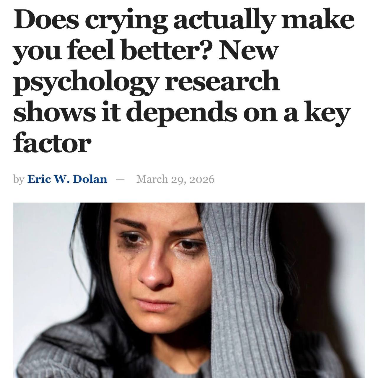 Плакать 2-4 раза в неделю полезно для здоровья — это поможет избежать депрессии, избавиться от хронических болячек и повысить уверенность в себе.