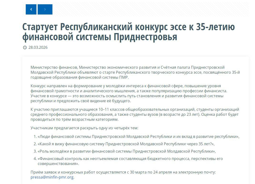 Конкурс эссе к 35-летию образования финансовой системы Приднестровья