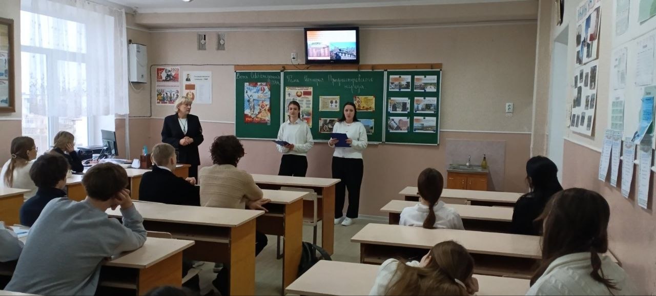 В рамках занятий прошли беседы, презентации и просмотр документальных материалов, включая фильм, представленный министром просвещения С. Н. Иванишиной. Школьники делились семейными историями военных лет.