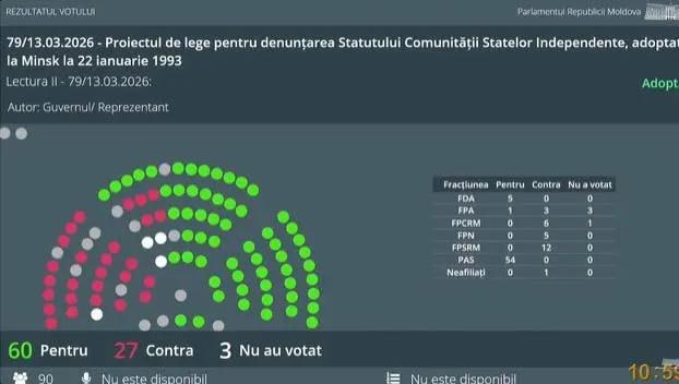 Парламент Молдовы денонсировал Соглашение о создании Содружества Независимых Государств (СНГ), а также Устав организации