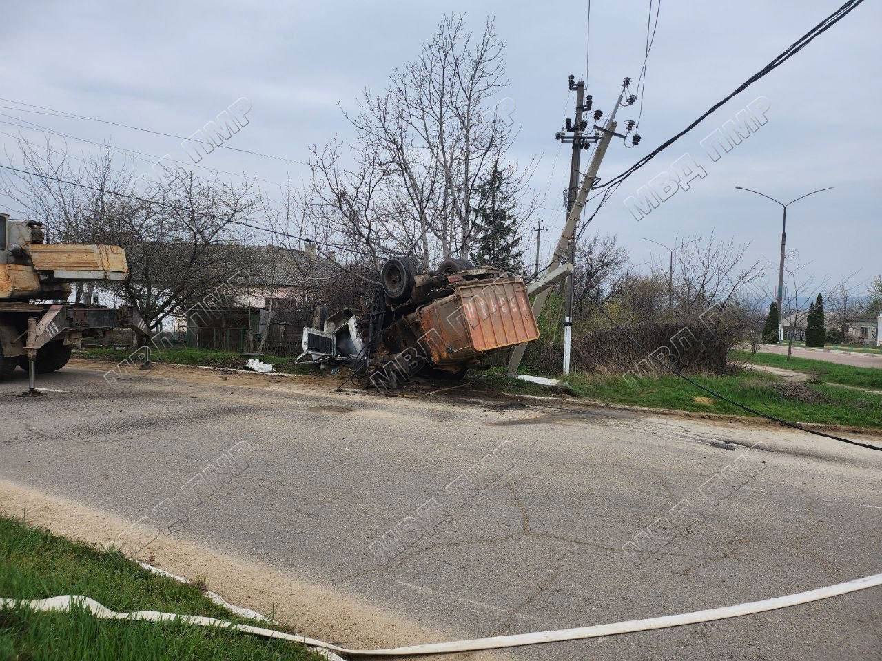 В Дубоссарах утром 3 апреля опрокинулся мусоровоз. Автомобиль двигался по улице Дзержинского. На спуске водитель не справился с управлением. При повороте на улицу Фрунзе совершил наезд на опору ЛЭП. Грузовик опрокинулся.