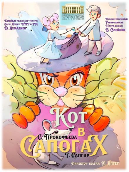 10:30 – кукольный спектакль «Кот в сапогах», 11:30 – «Каменный цветок», 18:00 – «Дикарь».
