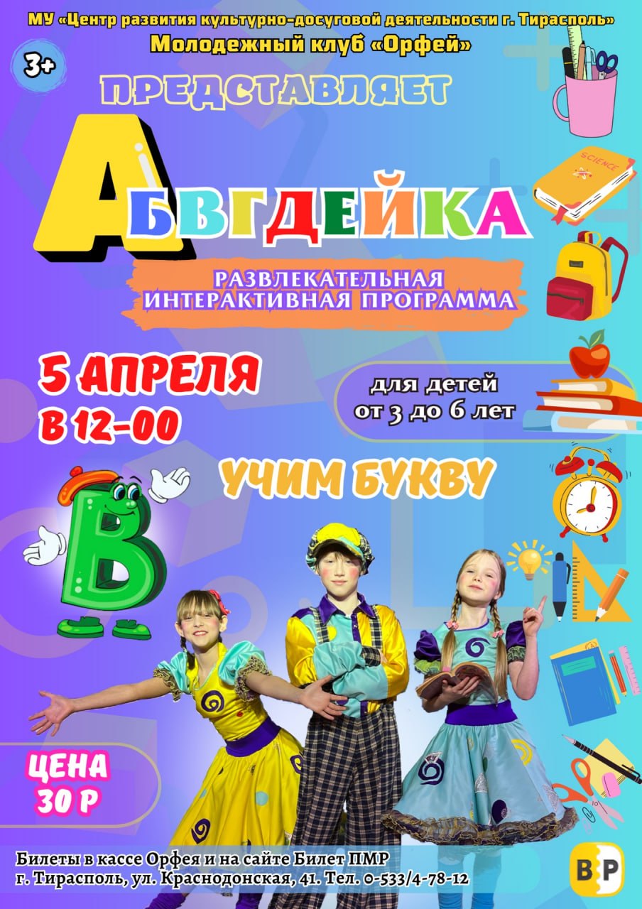 12:00 – интерактивная программа «АБВГДейка» (молодежный клуб «Орфей»).