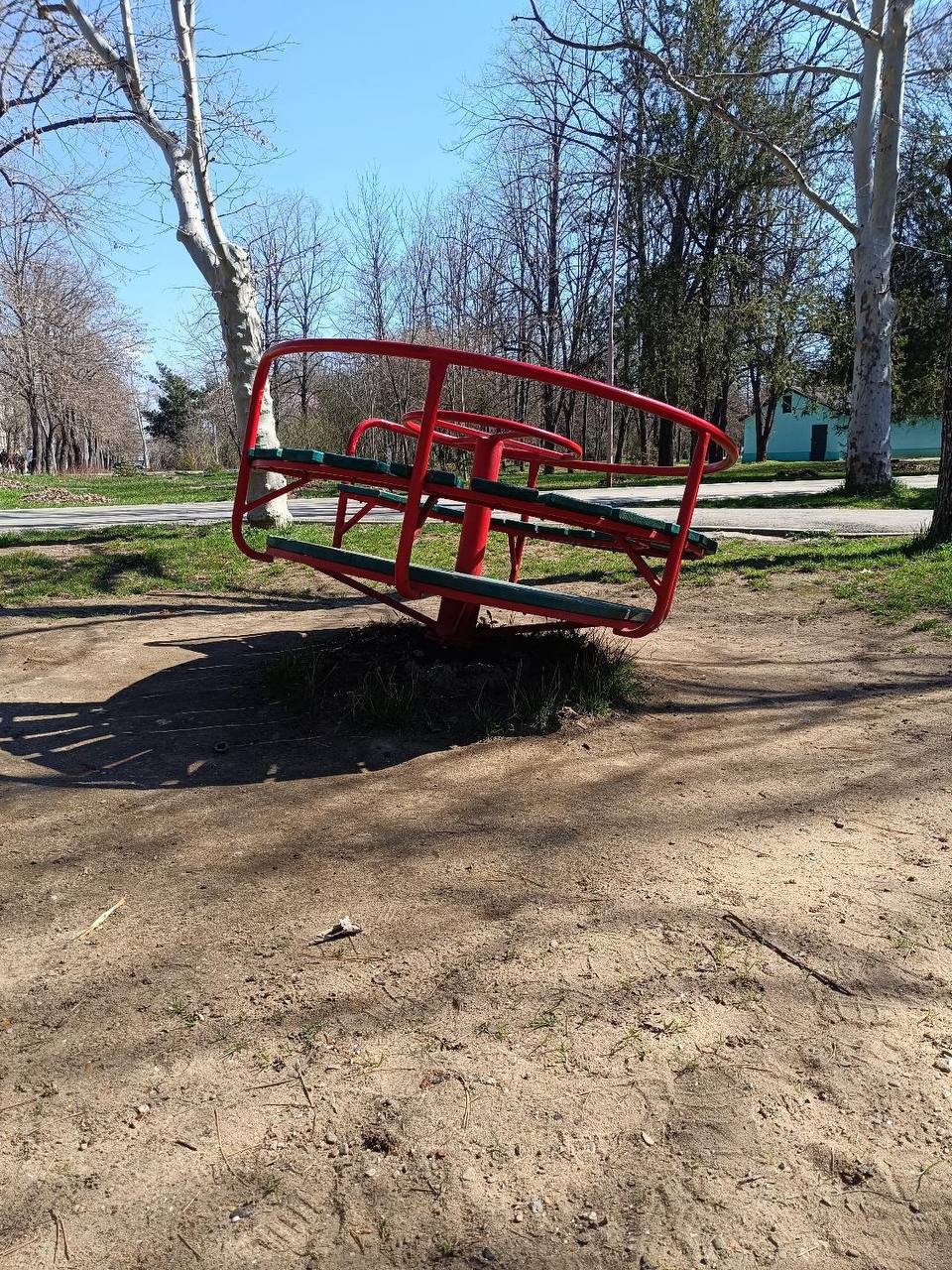 Детская площадка в центре Рыбницы (за Гос. Администрацией) в аварийном состоянии полтора года. Поломаны качели, в песочнице нет песка. Просьба к руководству обратить внимание