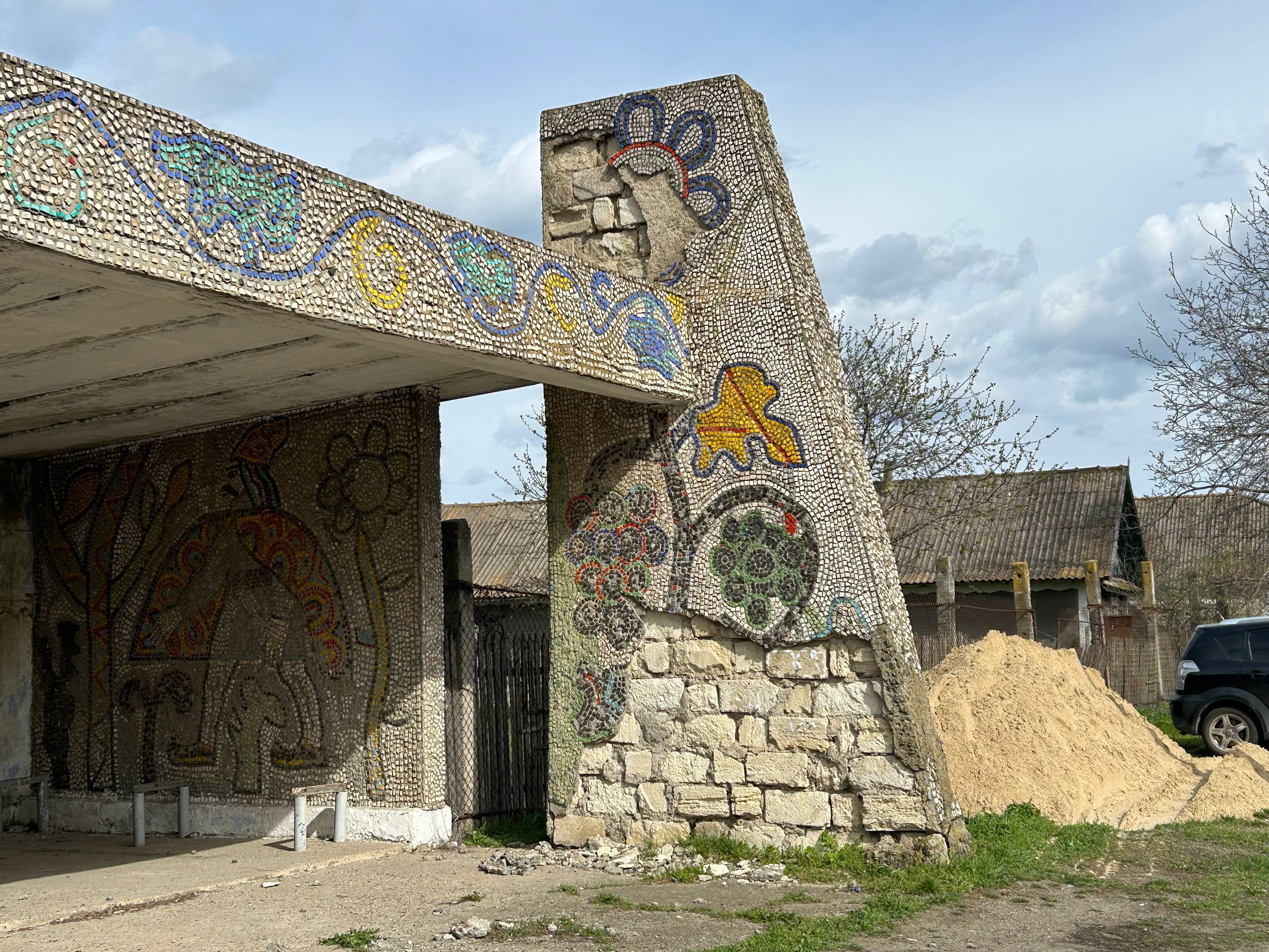 Остановку с мозаикой в селе Коротное Слободзейского района построили в конце 1970-х. Сейчас уникальный исторический объект нуждается в ремонте. При содействии депутата Верховного Совета по округу, спикера парламента Татьяны Залевской проведут реставрацию остановки. Уже завезли песок и цемент.