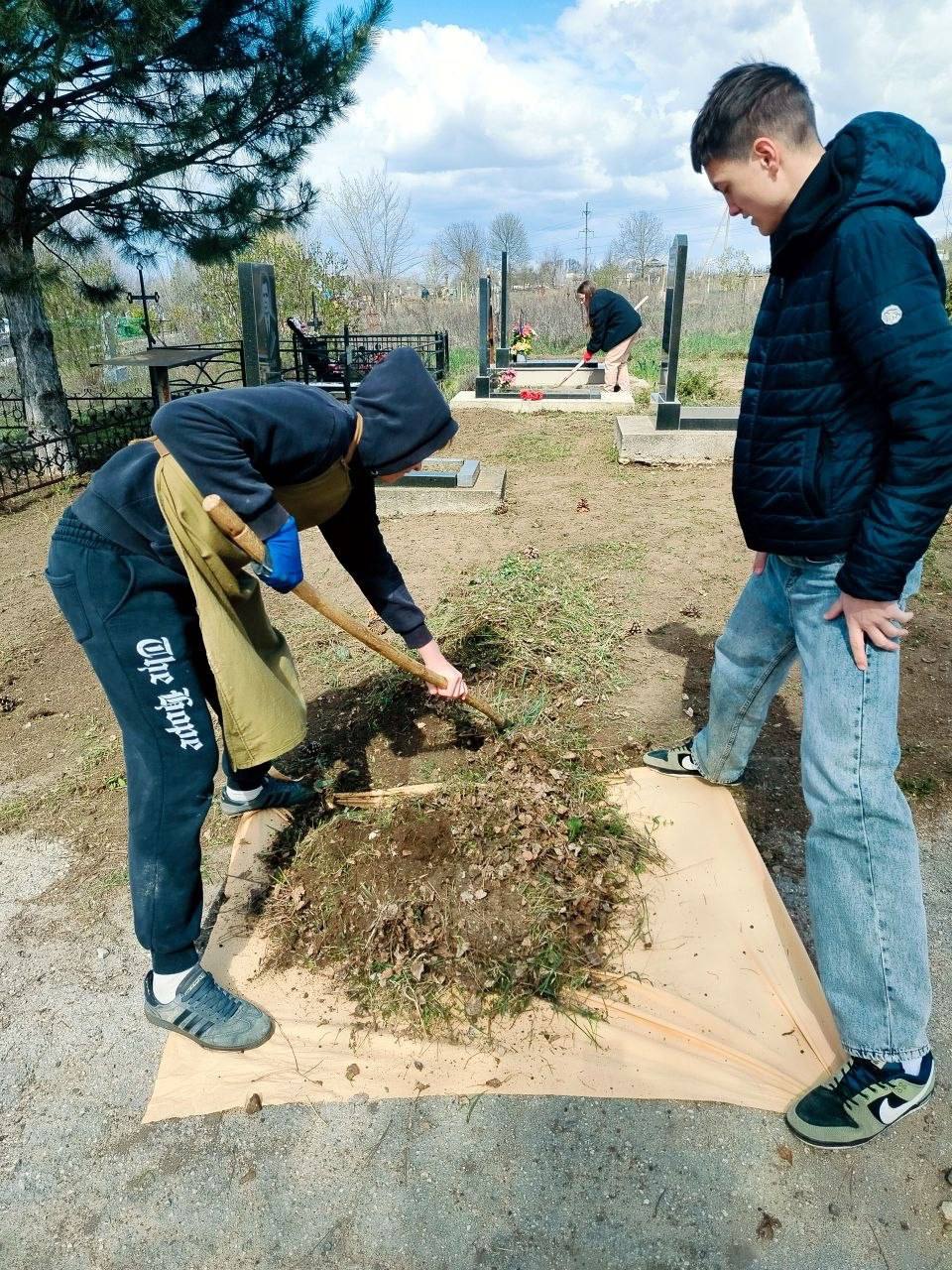 Школьный отряд «Волонтёров Победы» «Соколята» Дубоссарской школы № 2 привёл в порядок 24 захоронения ветеранов Великой Отечественной войны на Аллее Славы городского кладбища.