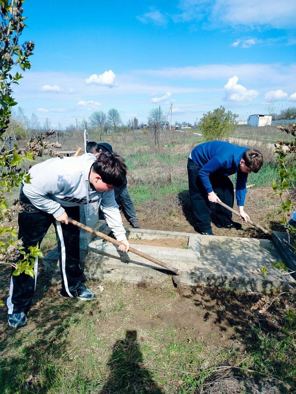 Ребята убрали траву и прошлогоднюю листву, привели в порядок кустарники, а также покрасили памятник на одной из могил.