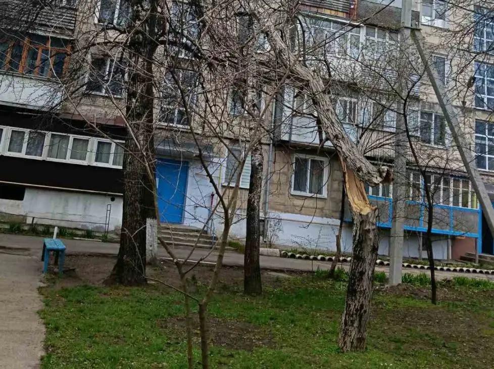В Днестровске дерево угрожающе нависает над двором пятиэтажки после вчерашнего ветра