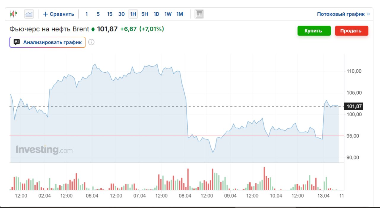 Цена на нефть снова подскочила после провала переговоров США и Ирана. Сегодня Америка введёт морскую блокаду Ормузского пролива и перестанет пропускать корабли, которые пропустил Иран