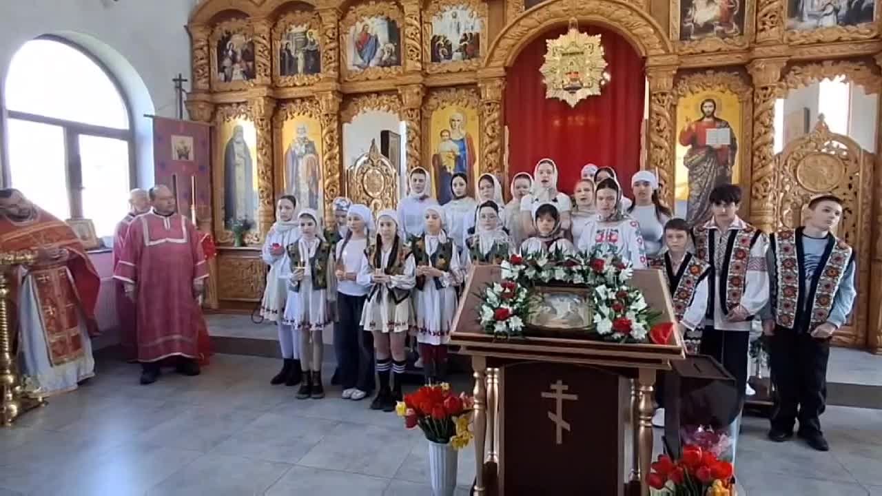 Сегодня учащиеся второй городской школы поздравили прихожан храма Успения Пресвятой Богородицы с праздником Пасхи