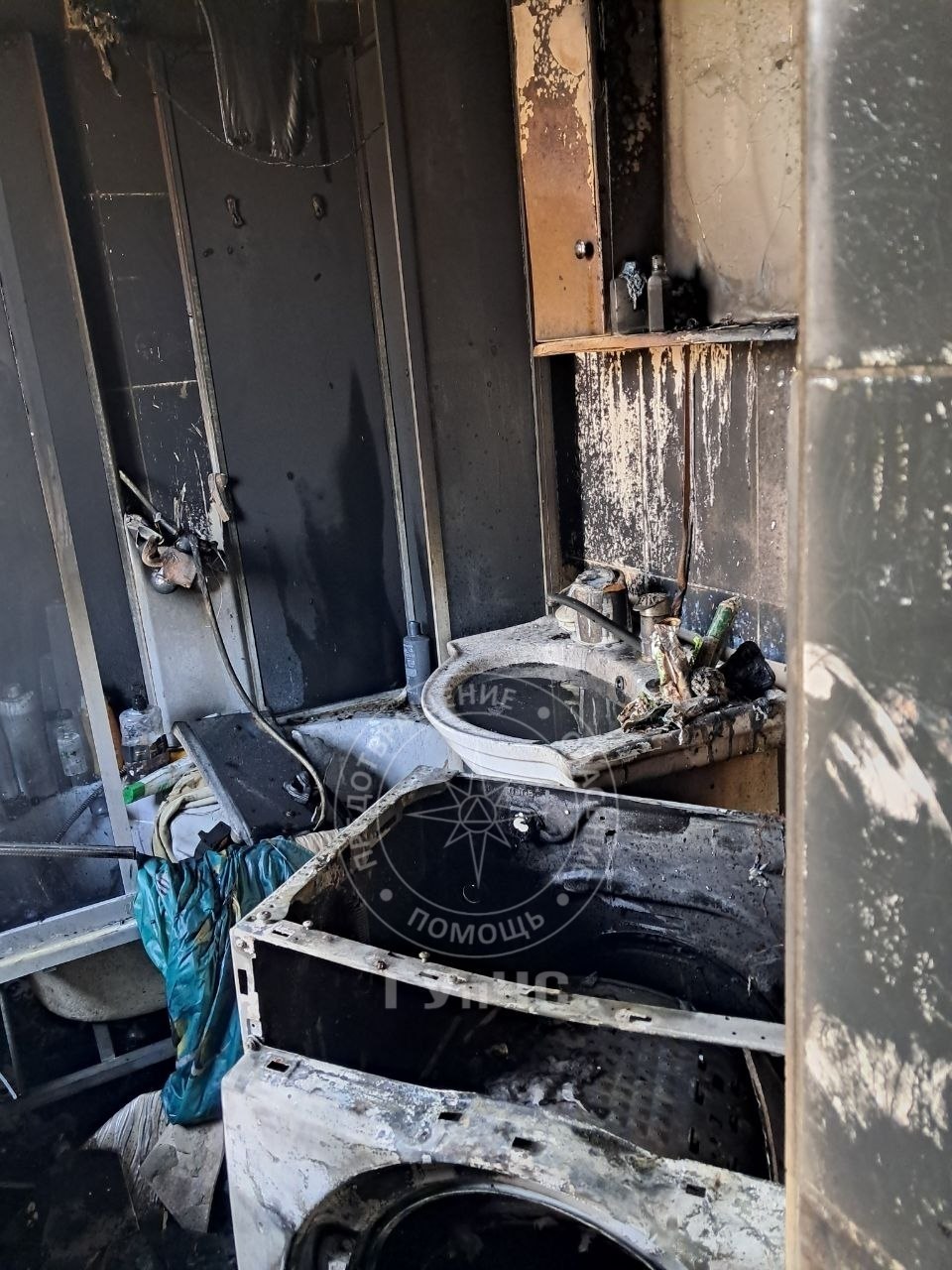 Пламя уничтожило бытовую технику, душевую кабину и пластиковые панели на потолке. Стены – в копоти. Хозяину понадобилась помощь врачей – порезал руку, когда разбивал стекло.
