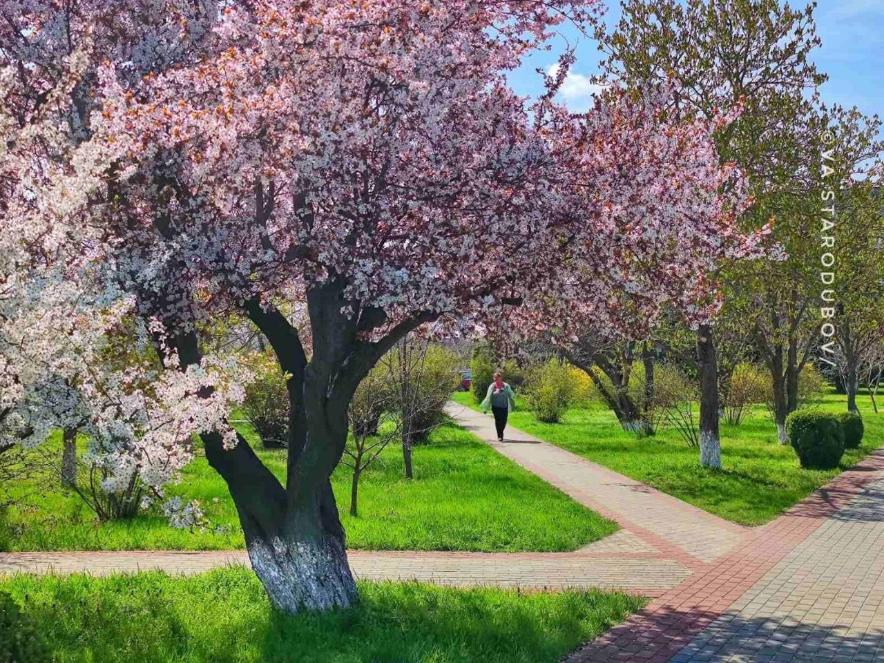 Дубоссары в весеннем свете: цветущие деревья и размеренное течение Днестра