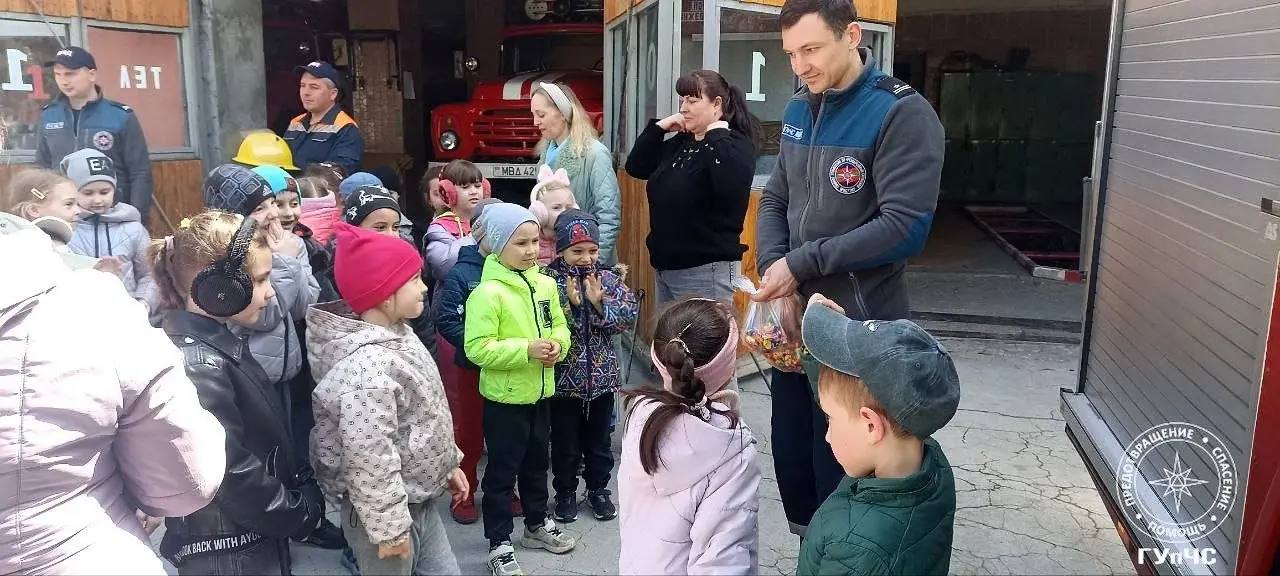 Малышам показали спецтехнику, рассказали о работе спасателей и дали примерить настоящие пожарные шлемы. Ребята даже смогли посидеть за рулём пожарной машины.