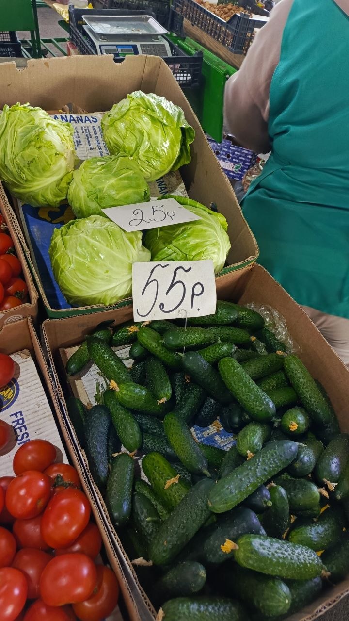 Упала цена на огурцы, такие маленькие красивые огурчики на нарезку на прошлой неделе стоили минимум 75 рублей, сегодня почти везде по 55. На 5 рублей подешевела молодая капуста, редиска на 15.