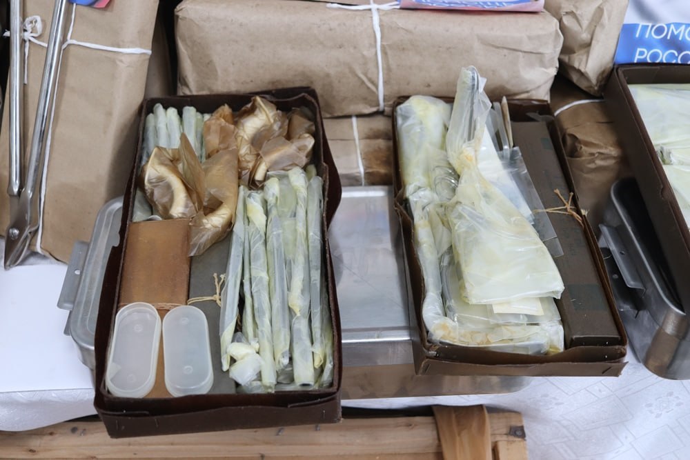 В 12 коробках — хирургические инструменты: скальпели, ножницы, зажимы, щипцы для снятия гипса и другое оборудование, необходимое для ежедневной работы врачей.
