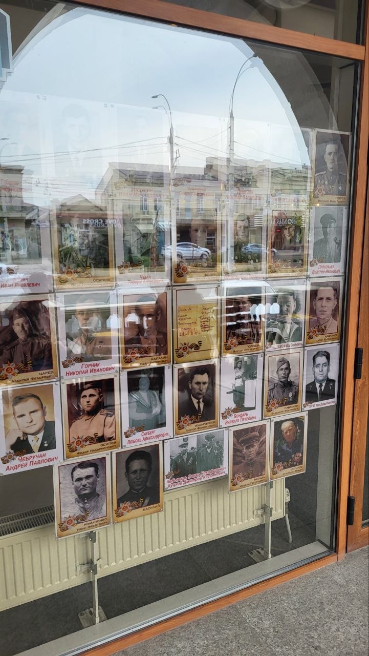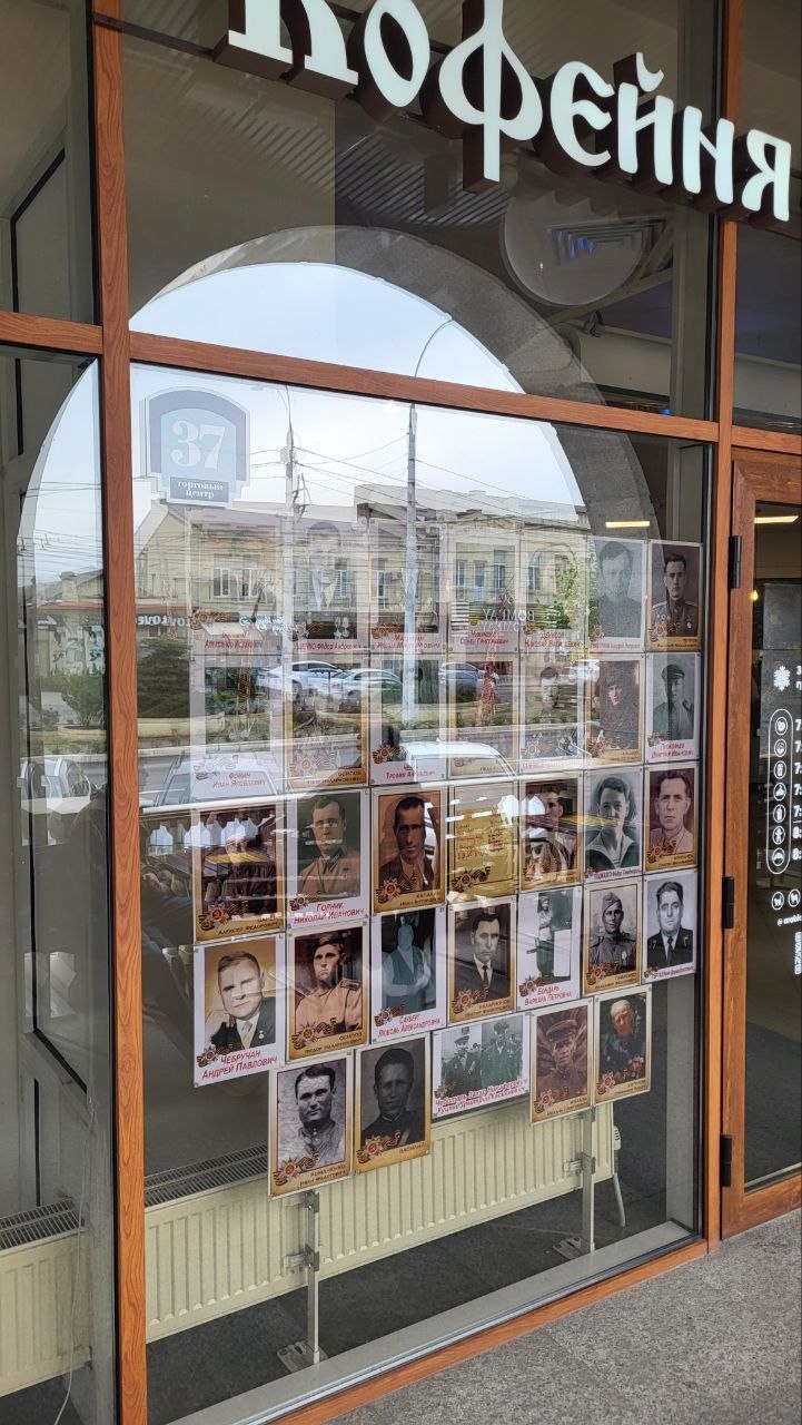 "Арабика" в ВГ1. На окнах работники кофейни разместили свой Бессмертный полк.