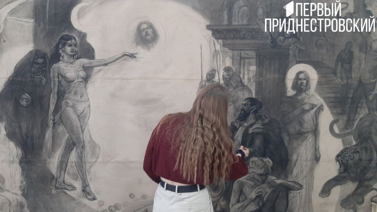 Дарья Пономаренко решила нарисовать масштабное полотно (более 3,5 м в длину и почти 1,8 м в ширину) по мотивам библейского сюжета о Саломее. Над картиной художница работает уже полгода.
