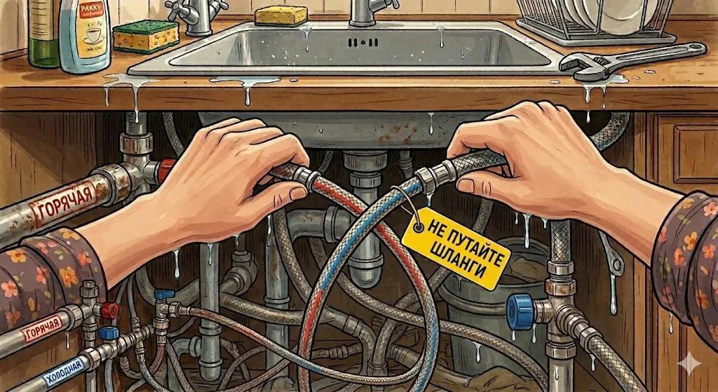 В результате жители около 50 квартир в двух соседних домах на протяжении трёх дней не могли нормально пользоваться водой — из холодных кранов текла горячая.