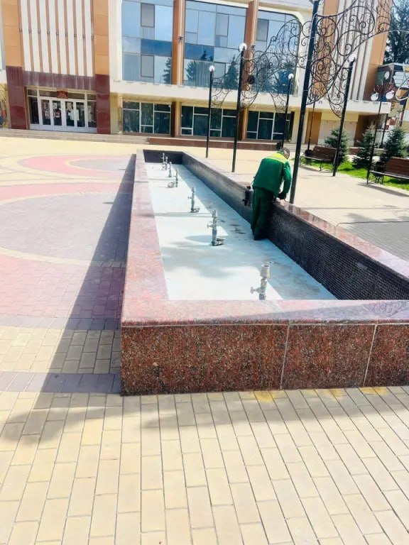 В Рыбнице чистят фонтан, в сети пишут, что запустить его обещают в начале мая.