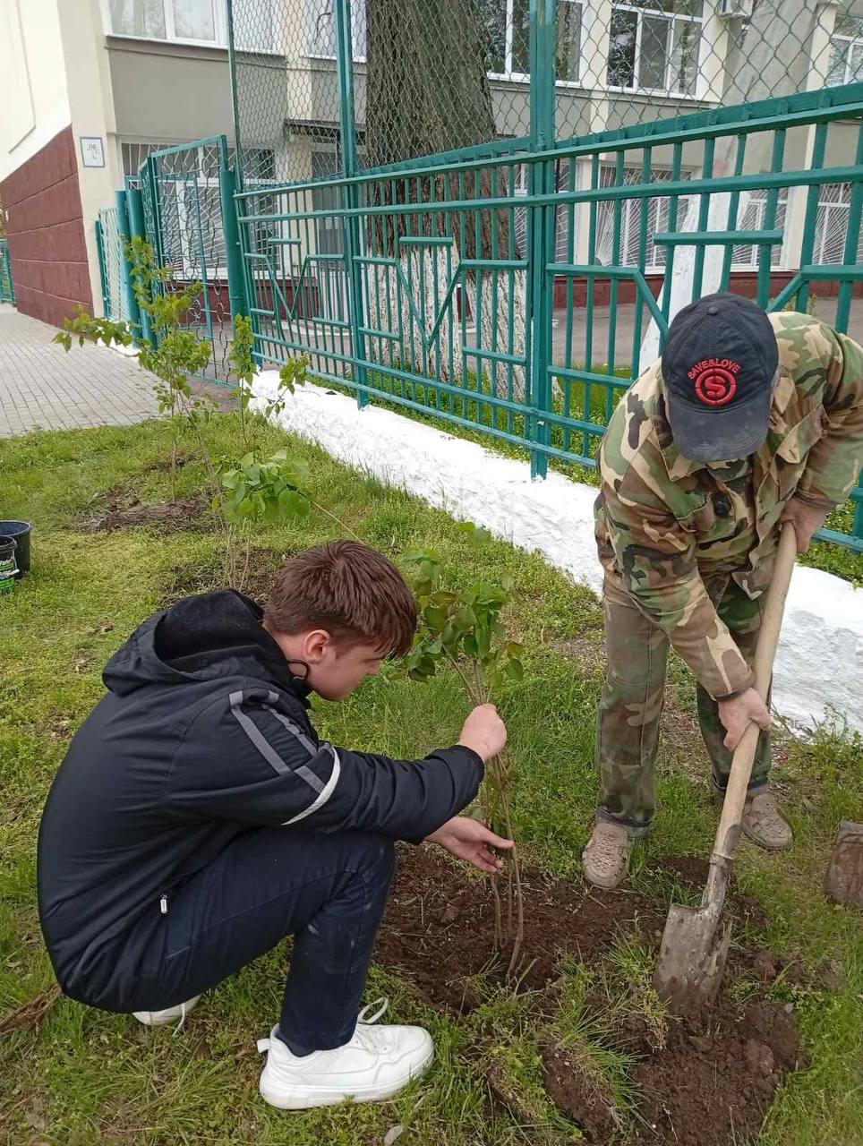 Учащиеся из отряда «Волонтёры Победы» вместе с экологическим десантом высадили кусты сирени.