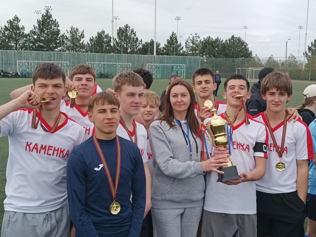 Команда Каменской ОСШГ №2 заняла 1 место в республиканском турнире «Кожаный мяч» среди юношей 9–11 классов.