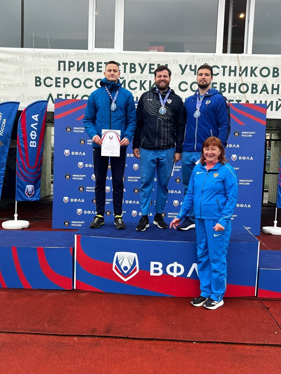 Копьеметатель Николай Орлов (на фото — в центре) одержал победу на Всероссийских соревнованиях, проходивших в Адлере