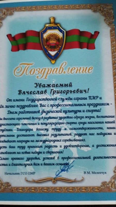 На нем было вручено 2 ордена и 2 медали, 2 удостоверения отличника физической культуры и спорта ПМР, 3 грамоты Президента ПМР, а также почётные грамоты Государственной службы по спорту ПМР и Государственной администрации г. Тирасполь и г. Днестровск.В...