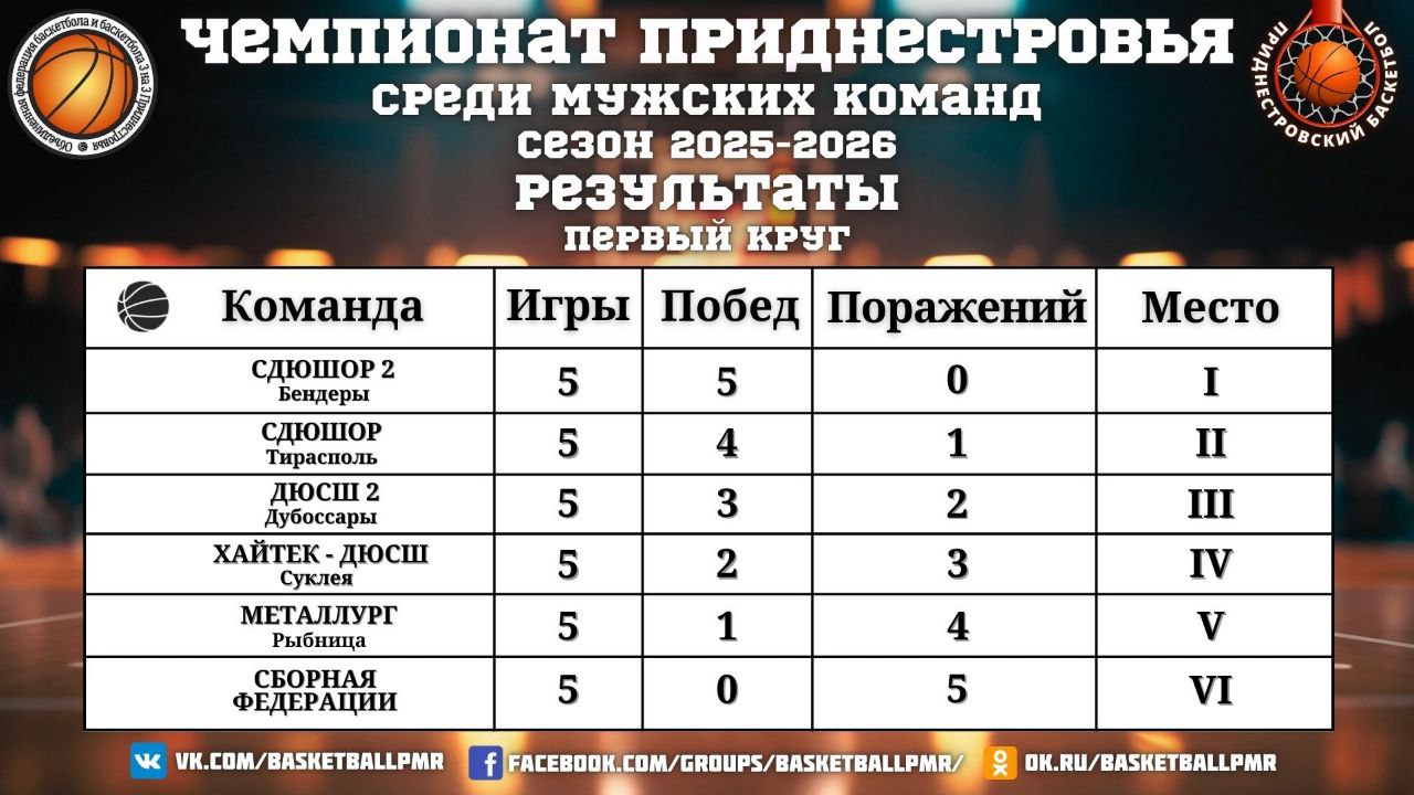 В чемпионате Приднестровья по баскетболу завершился первый круг