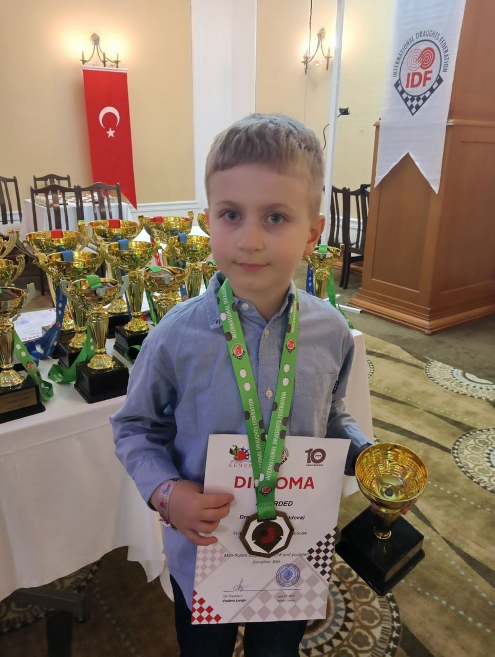 Самый юный призер! Воспитанник Тираспольской СДЮШОР №3 Филипп Драчук завоевал бронзовую медаль на молодёжном чемпионате Европы по шашкам-64 в Кемере (Турция). Он победил в блиц-турнире (3+2) в группе U9, набрав 8 очков из 16-ти возможных. Филипп стал самым юным участником чемпионата, он только в этом году идет в школу.